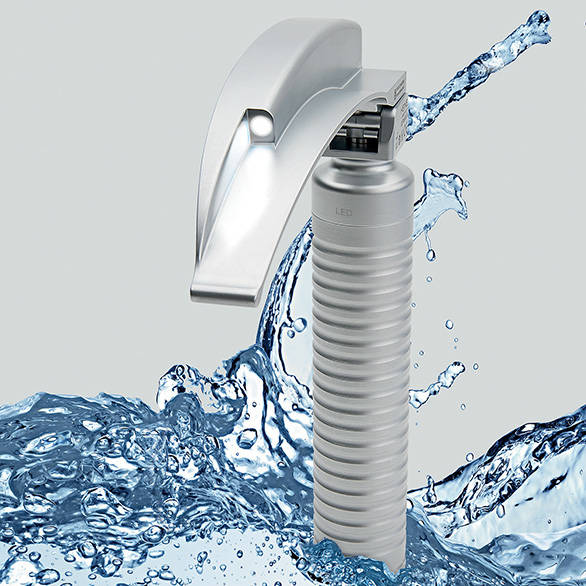 HEINE EasyClean LED laryngoskoopin kädensija kestää manuaalisen puhdistuksen ja liottamisen sekä konepesun. Kädensija on yhteensopiva kaikkien laryngoskooppilastainten kanssa standardin ISO 7376 mukaisesti (vihreä standardi).